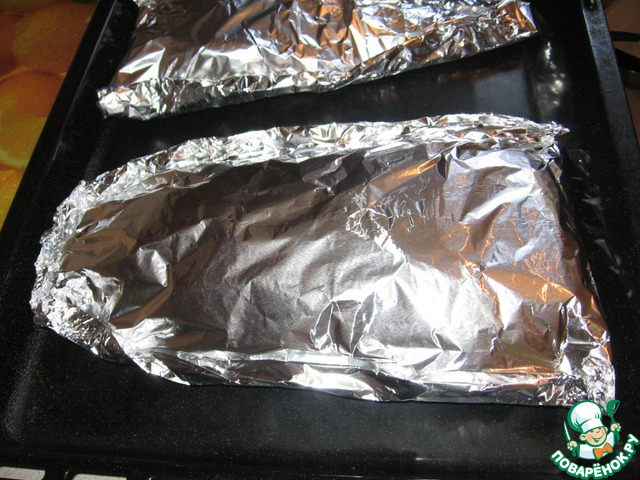 Завернуть рыбу плотно в фольгу и поставить в духовку, разогретую до 180С. Запекать примерно минут 20. Затем фольгу раскрыть и еще 10 минут до появления золотистой корочки.