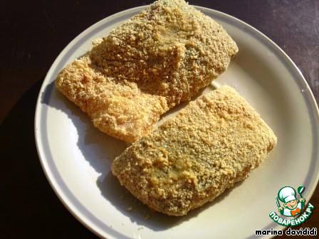 Потом взбиваем яицо и обмакиваем в нем кусочек рыбы. В конце обваливаем в панировочных сухарях