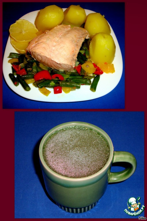 | Это первое блюдо, которое входит в мой диетический рацион. Рыбу для себя я приготовила с овощами. Своим мужчинам ещe и с отварным картофелем... Понравится рыба и вкусно ли, судить вам. А мне очень понравился мой ужин (в 18. 00 ) |