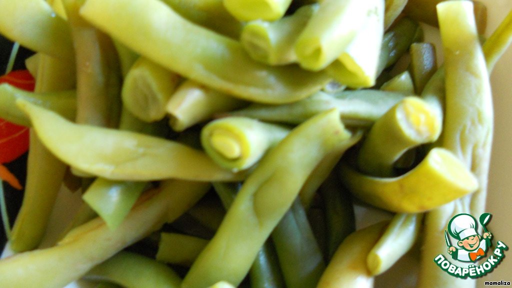 Стручковую фасоль промыть, обрезать кончики, нарезать на кусочки, отварить в течение 10 минут.