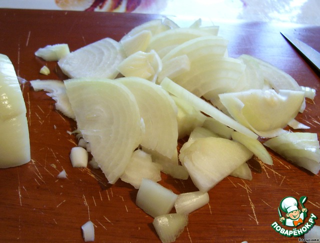 Нарезаем лучок полукольцами или кусочками, кому как удобней,