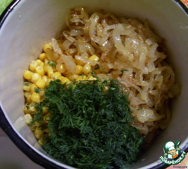 Кладем обжаренный лук в емкость, к нему добавляем кукурузу, с которой, предварительно, сливаем жидкость, нарезанный укроп, и блендером превращаем все это в пюре. Для пикантности добавляем лимонный сок, перчим и солим по вкусу (Внимание! Главное - сдержаться и не "удегустировать" половину соуса раньше времени! :-D У меня лично руки так и тянутся - очень я неравнодушна к жареному луку и кукурузе! Тут нужно проявить силу воли - ведь не ради одного соуса мы тут собрались!)