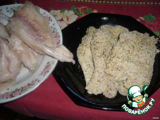 Отдельно размешать яичко с молоком. Обмакивать филе в эту смесь, чтобы хорошо пропиталось, и сразу же обмакивать в сухарную смесь, хорошенько прижимая к ней рыбку, чтобы как можно больше сухарей прилепилось.