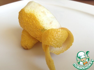 Берем половину лимона и снимаем с низу кожуру не доходя до конца 1 см.