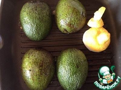 На хорошо разогретый гриль выкладываем авокадо рыбкой вниз.