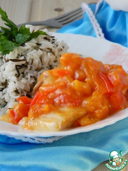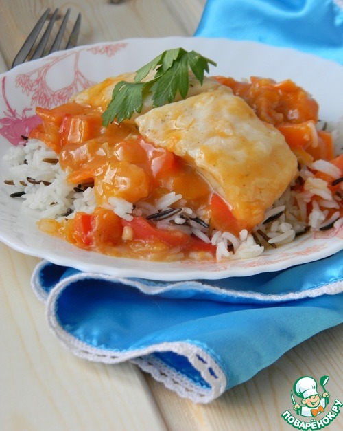 Выложить рыбку на рис или рядом, полив обильно соусом.