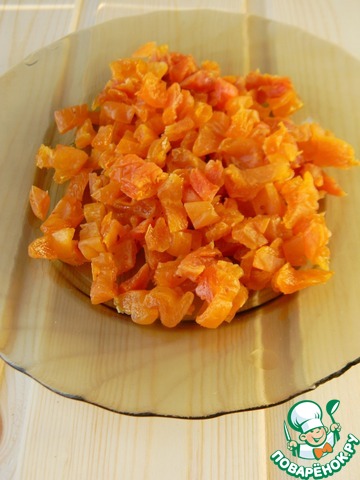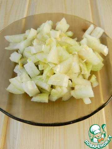 В сковороду положить масло, слегка поджарить лук и курагу.