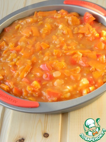 Залить соусом. Соуса получилось много, можно и 1 кг рыбы им залить, но я не стала ничего оставлять)).