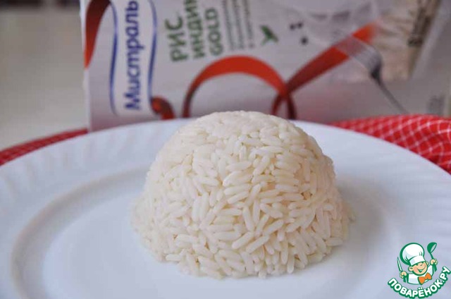 Для приготовления гарнира берём рис "Индика Gold" от "Мистраль" в пакетиках.