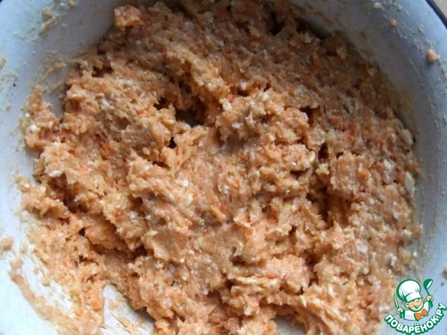 Пропустить через мясорубку лосось, тыкву, лук и вареные яйца.