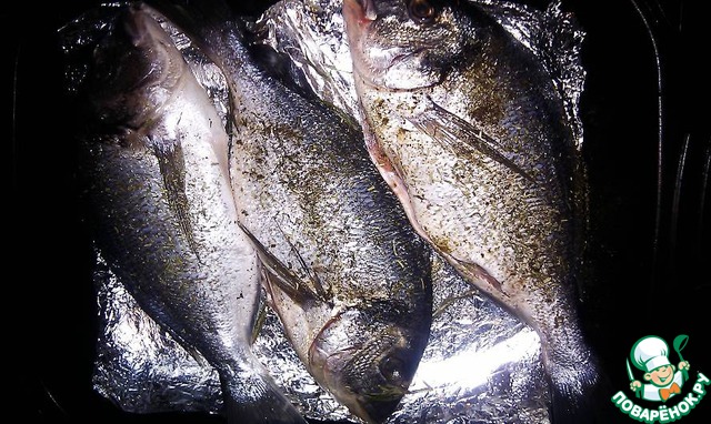Рыбку чистим, потрошим. Внутрь и сверху соль, розмарин и чабер.