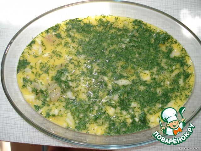 Яйца взбить с молоком, посолить.