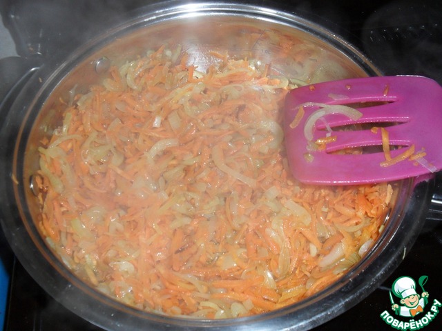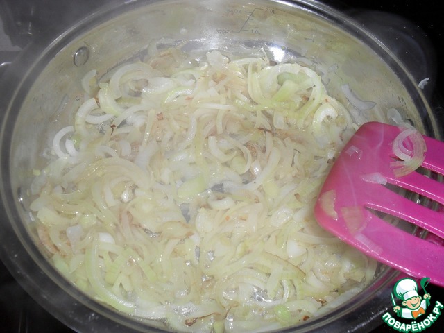 Лук обжарить на среднем огне на растительном масле примерно 3 мин. до мягкости.