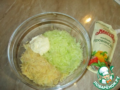 Покрываем картофельно-кабачковой смесью. Отправляем в духовку на 40 минут, при температуре 200 градусов
