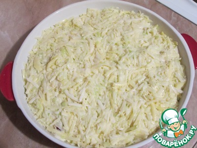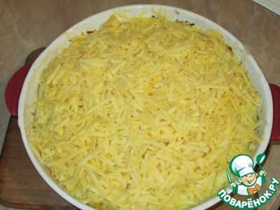 Вынимаем блюдо из духовки и посыпаем сыром. Убираем в духовку еще на 30 минут.