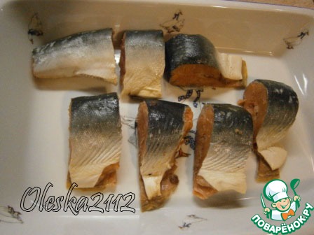 Далее я готовлю рыбу в духовом шкафу. Потому беру жаропрочную форму и выкладываю кусочки рыбы.