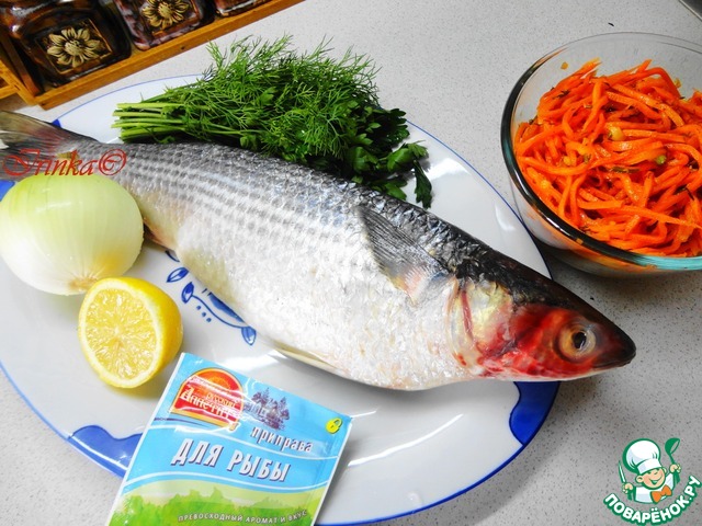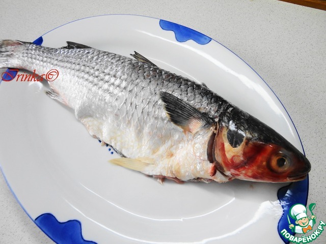 | Увидела в продаже парную кефаль. Купила одну рыбинку, примерно на кило двести весом. И приготовила ее таким вот оригинальным способом. |