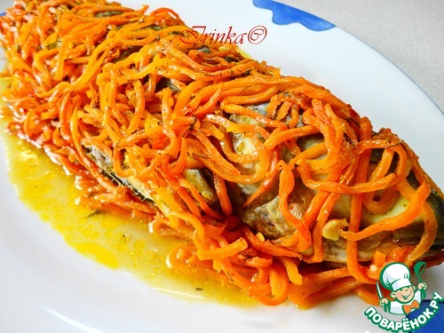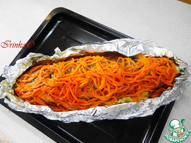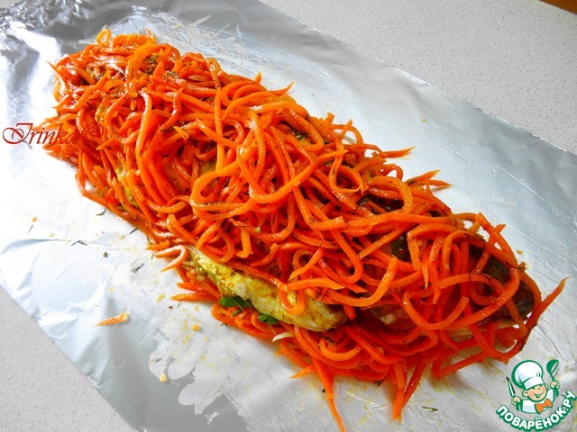 Сверху на рыбу выкладываем оставшуюся морковь.
