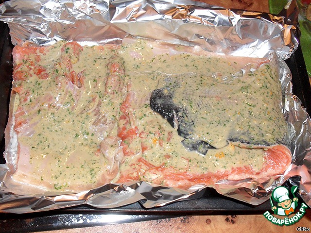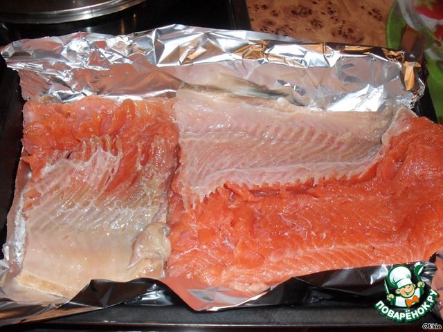 Форель солим и выкладываем на лист фольги.