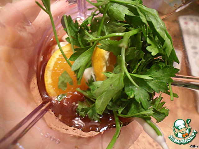 В блендере смешать вино, мандарин, майонез и зелень.
