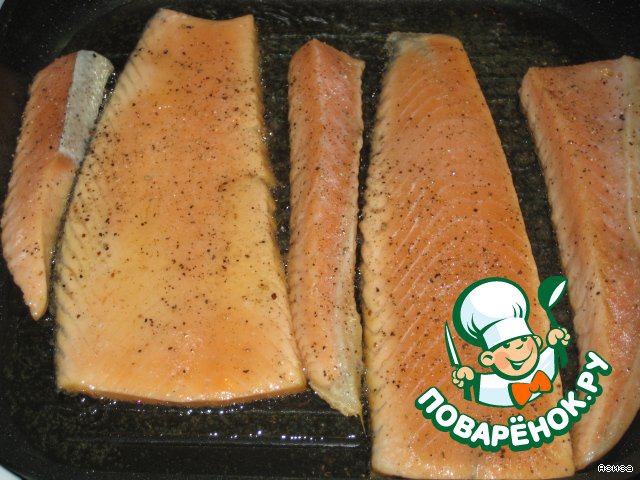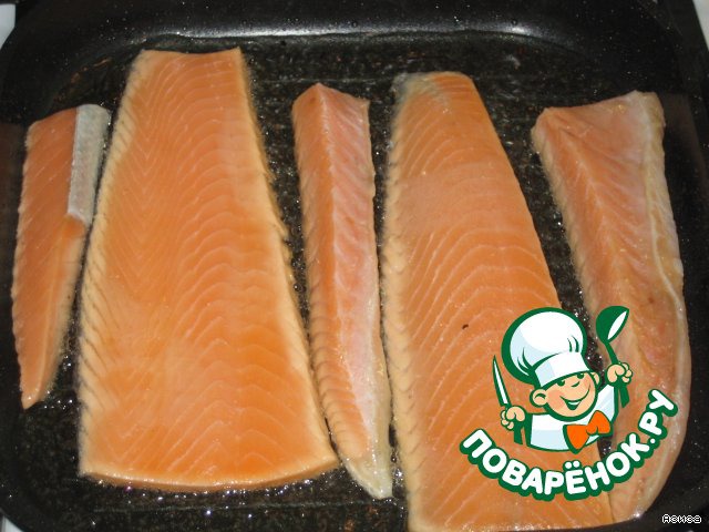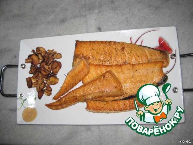 | Вкуснейшая красная рыбка сочная внутри и с хрустящей корочкой снаружи. |