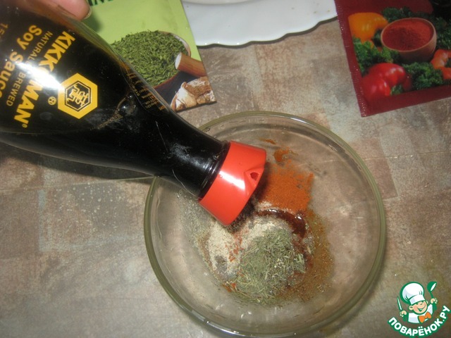 Смешиваем специи, сок половины лимона и соевый соус ТМ "Kikkoman"