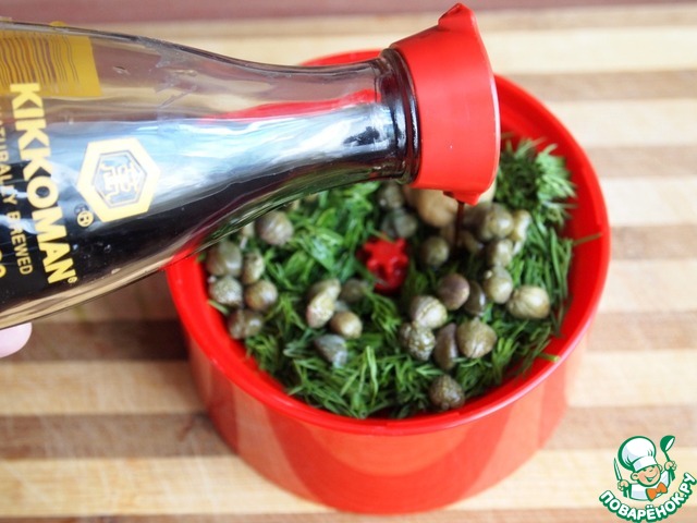 В блендере соединить нарезанный укроп, каперсы, сок половины лайма, горчицу, соевый соус Kikkoman, оливковое масло и соль по желанию.
