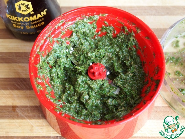 Хорошо натереть каждый карасик зеленым соусом и оставить на 20 минут мариноваться.