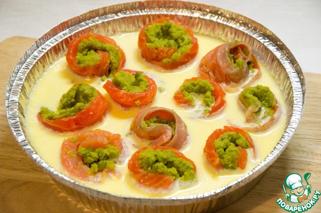 Рулеты залить получившимся соусом и поставить в духовку на 15 минут при 200 °C.