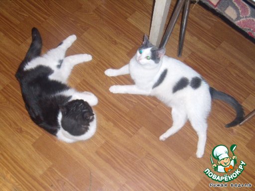 Выгоняем кошек из кухни. Они упорно не уходят с выражением лица: "ну мы тут тихонько полежим..."