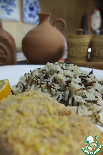 | Нежное филе лосося в ароматной хрустящей корочке отлично сочетается с пряной смесью дикого и пропаренного длиннозерного риса. |