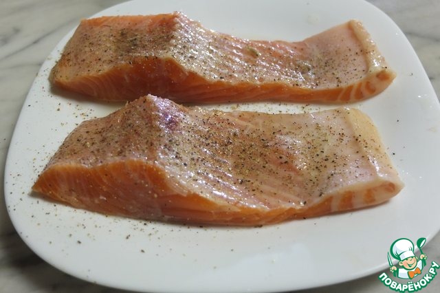 Филе посолить, поперчить, обильно полить лимонным соком. Накрыть пищевой пленкой и убрать в холодильник на 30 -40 мин.