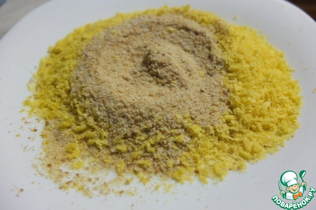 Панировочные сухари смешиваем с темпурой и цедрой лимона.