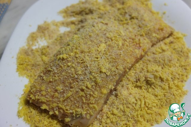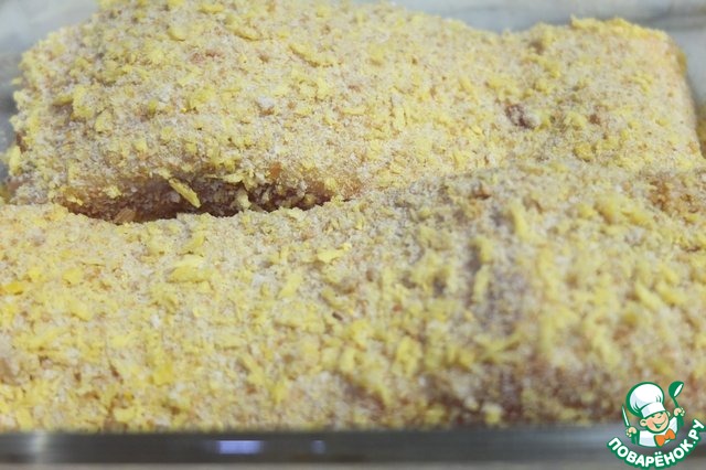 Выкладываем в форму для запекания, посыпаем оставшейся панировкой.