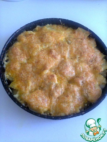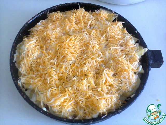 9. Сверху всё это посыпаем сыром, тёртым на тёрке (я тру на мелкой, но можно и на крупной) и ставим в духовку на 30 мин. до готовности.