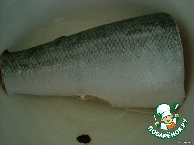 Семга в идеале должна быть целиком, но так как она дорогая рыбка, у меня была половина с хвостом.