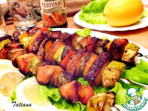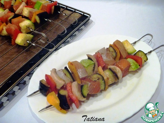 | Вкусный, быстрый и полезный ужин. Сочная и нежная рыбка, превосходно сочетается с чуть похрустывающими овощами. Приготовить шашлык из рыбки, можно и дома, в духовке. |