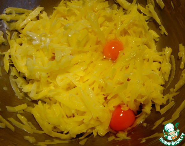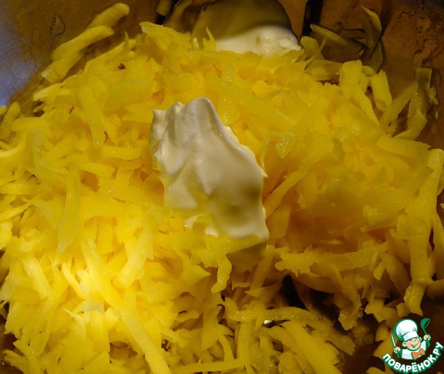 Сверху положить 1. ст. л. натёртого на мелкой тёрке твёрдого сыра.