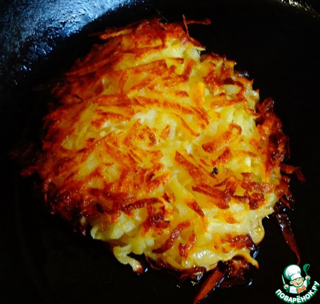 Отжать картофельный сок и положить 1 ст. л. сметаны. Она нужна для того, чтобы картофель не потемнел перед жаркой.