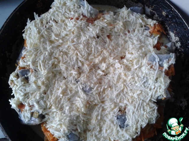 Смешиваем молоко, сметану (майонез)и сыр (который предварительно натерли на терке). Все ингредиенты берем на глаз, получается вот такая кашица: