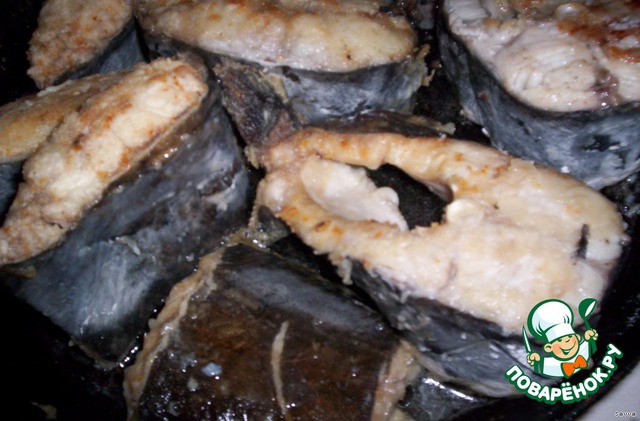 - порционные куски сома посолить, поперчить, полить соком лимона, ПОСТАВИТЬ В ХОЛОДИЛЬНИК на 30 -40 минут