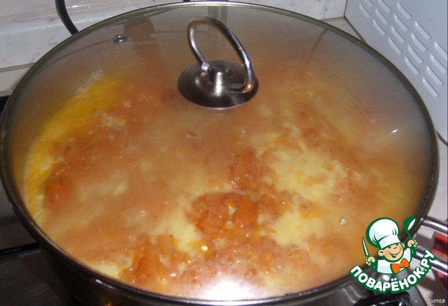Рыба потушилась, переворачивать не надо. Кладем маринад на рыбу.