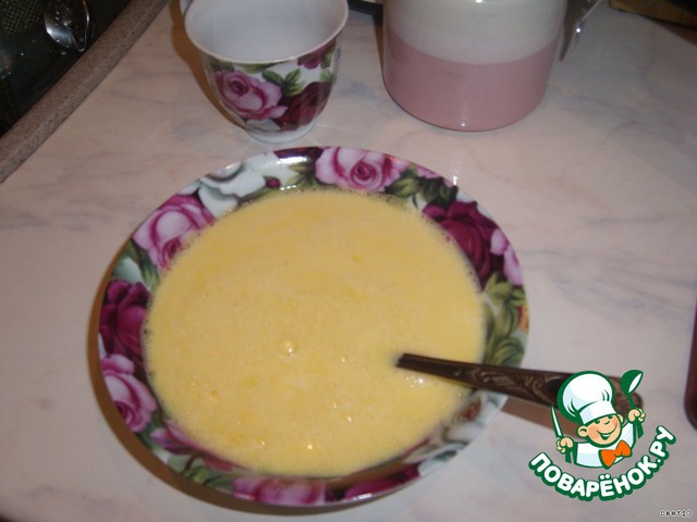 Взбиваем вилкой. Добавляем молоко. Присаливаем.