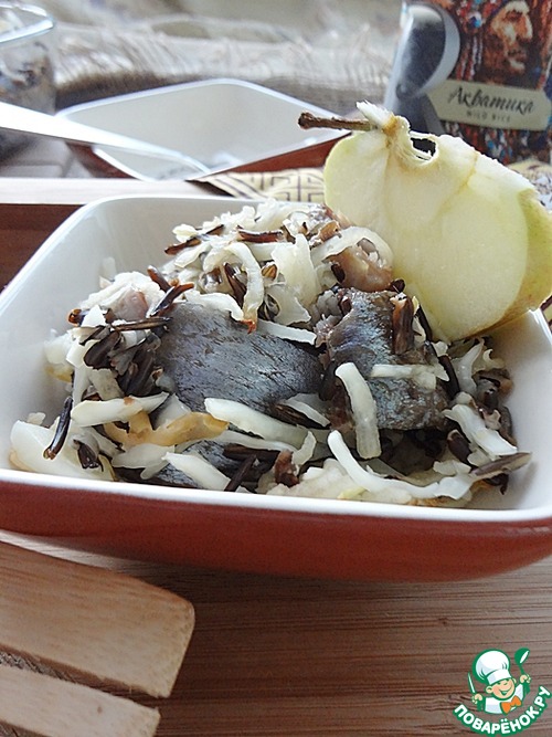 При подаче украсьте яблоком. Вкусно в горячем и холодном виде. Удивительно, но дочь, равнодушная к рису и селедке, ела с удовольствием.