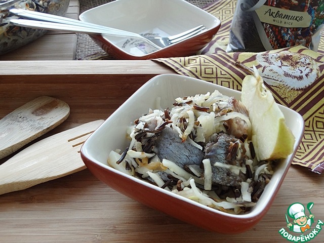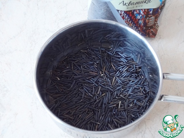 Для приготовления этого блюда я использую дикий рис Акватика Wild Rice от ТМ Мистраль. Отмерьте крупу, промойте, залейте водой в соотношении 1:3, варите в течении часа.