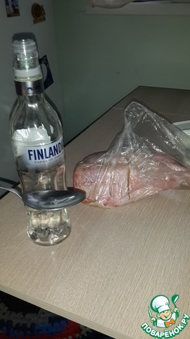 Перекладываем все в пакет и добавляем к рыбе водку. Завязываем и забываем про нее на 20 минут, но периодически переворачиваем, чтобы равномерно водка пропитала окуней.