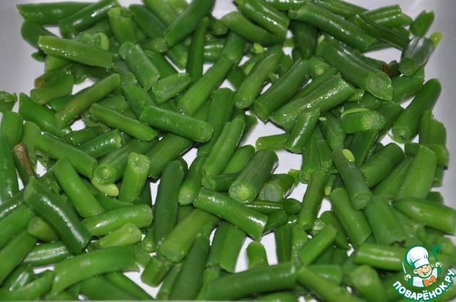 Фасоль (у меня замороженная) обдать кипятком.
