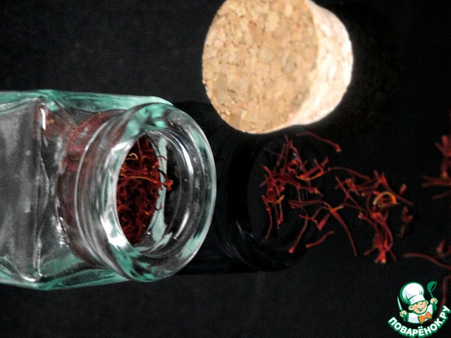 Шафрановые ниточки положить в бульон (250 мл) и уварить бульон в два раза.