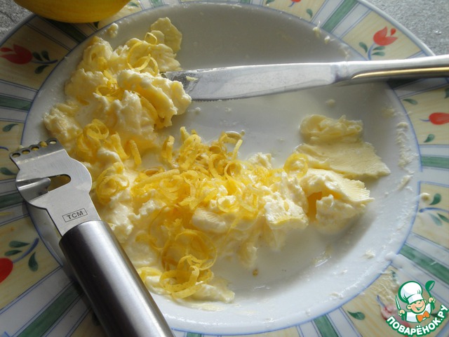 50 г сливочного масла, сливки и цедру от лимона перемешать до кремообразной массы.