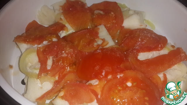 Выложить сверху помидоры. И поставить на 35-45 минут